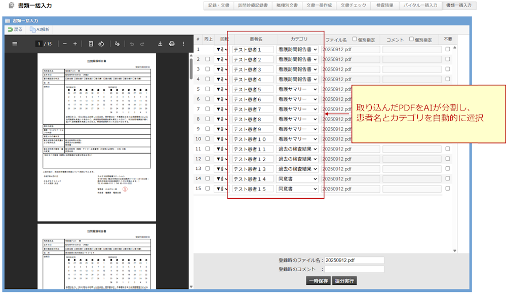 ~在宅医療の多様な文書管理をスマートに。PDFを自動で識別・分割し、指定したカテゴリに分類・保存~
